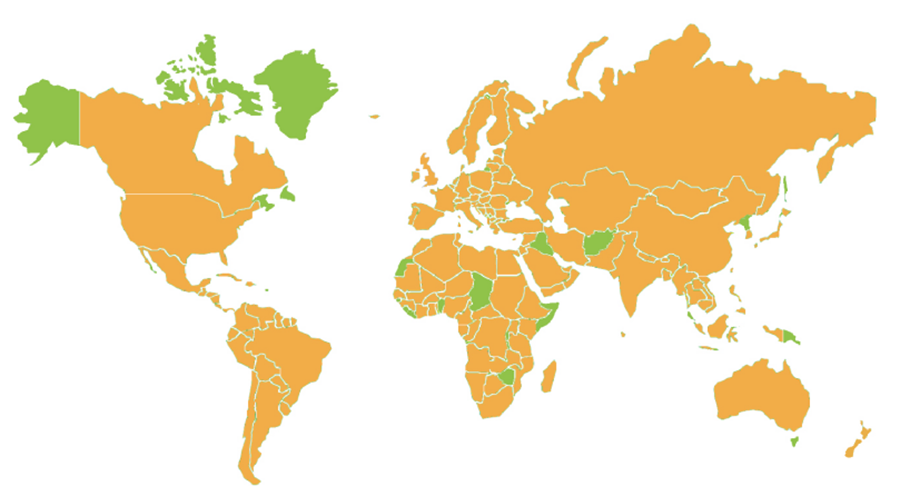 供應(yīng)鏈金融服務(wù)業(yè)務(wù)覆蓋223個(gè)國(guó)家和地區(qū)(如圖橙色部分)