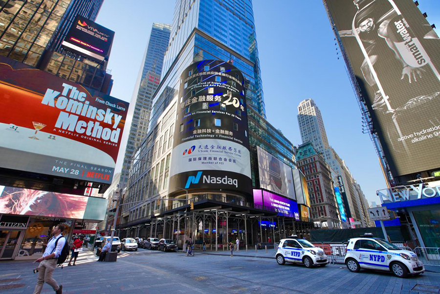 美東時間5月25日,天逸金融服務集團(以下簡稱“天逸集團”)登陸被稱為“世界第一屏”的美國標志性建筑納斯達克大屏,在被譽為“世界的十字路口”的紐約時代廣場,向世界展示它的風采。