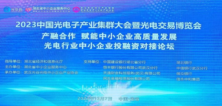 近日,由湖北省經(jīng)濟(jì)和信息化廳指導(dǎo)、湖北省中小企業(yè)服務(wù)中心主辦、武漢光谷光電中小企業(yè)產(chǎn)業(yè)協(xié)會(huì)承辦的“產(chǎn)融合作·賦能中小企業(yè)高質(zhì)量發(fā)展”光電行業(yè)投融資對(duì)接論壇在武漢成功舉行。天逸集團(tuán)作為支持單位,受邀參加了此次活動(dòng)。
