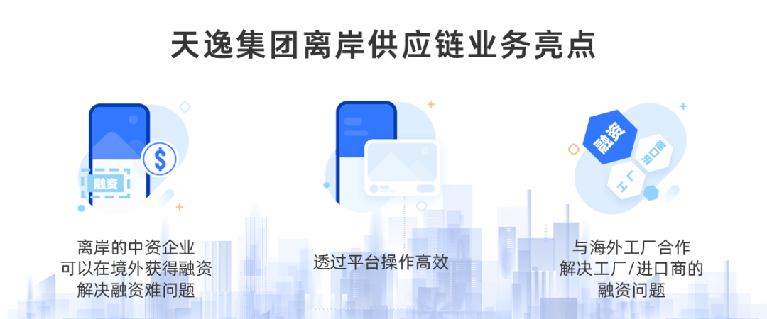 近年來,天逸集團不斷創(chuàng)新國際金融服務產品,現(xiàn)已打造涵蓋海外銀行開戶、海外銀行收付款及匯兌、出口貿易融資、離岸貿易融資、海外項目融資、跨境電商融資、中企“出?!比芷诜盏榷鄨鼍胺丈鷳B(tài)圈,為各類中資企業(yè)的全球布局提供一站式金融服務解決方案。