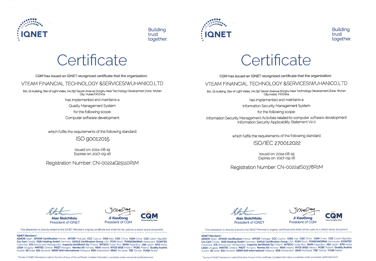 此次榮獲雙體系國際認(rèn)證,不僅是天逸集團(tuán)發(fā)展歷程中的重要里程碑,更是集團(tuán)持續(xù)追求卓越、實(shí)現(xiàn)國際化發(fā)展的有力證明。未來,天逸集團(tuán)將繼續(xù)深化質(zhì)量管理和信息安全管理體系的建設(shè),不斷提升科技創(chuàng)新能力和服務(wù)水平,為全球客戶提供更加安全、高效、便捷的金融服務(wù)解決方案。