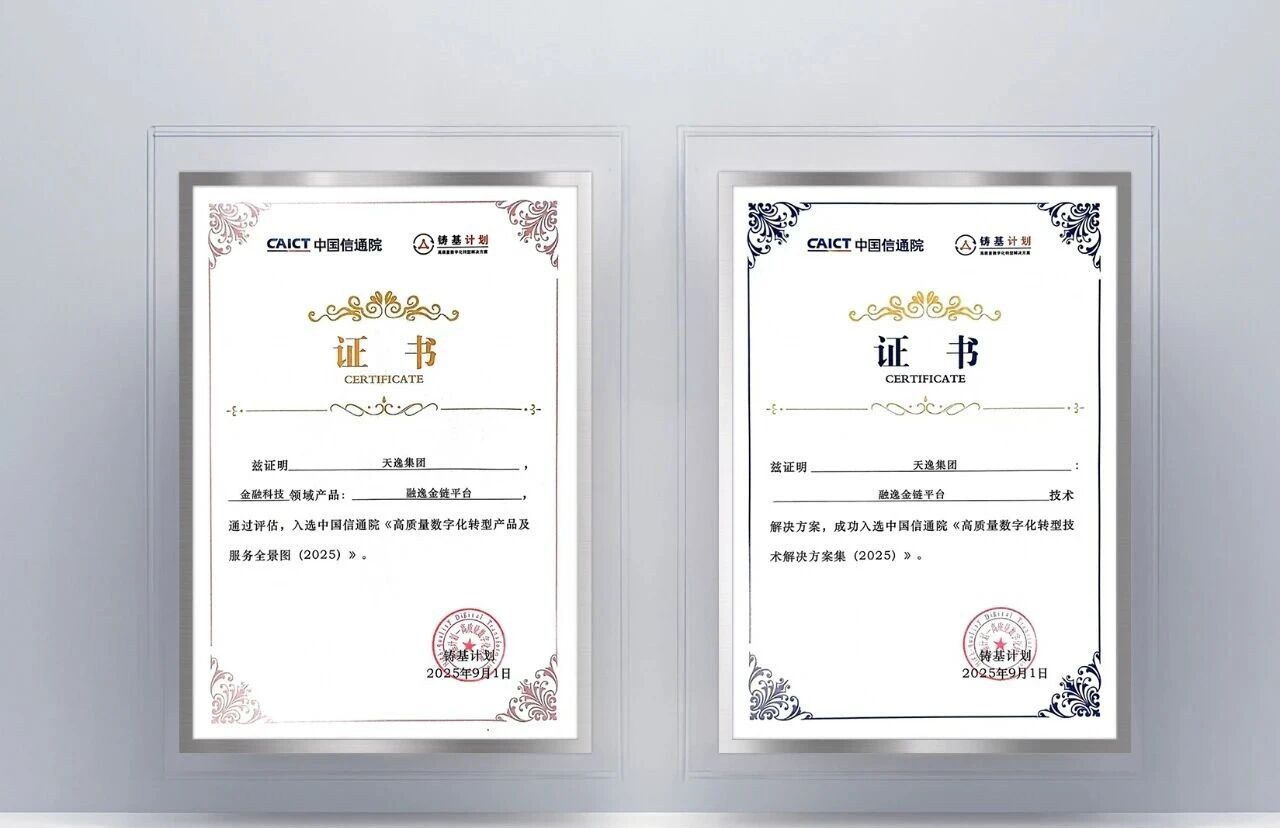 近日,由中國信通院主辦的“2025數(shù)字生態(tài)發(fā)展大會”在北京舉行。天逸集團作為國際貿易金融服務領域領軍企業(yè),與華為、阿里、騰訊、抖音、DeepSeek等頭部企業(yè)共同入選信通院“高質量數(shù)字化轉型產品及服務全景圖”及“高質量數(shù)字化轉型產品及服務典型案例”,再次彰顯天逸集團科技服務在推動產業(yè)數(shù)字化升級過程中的示范價值和影響力!